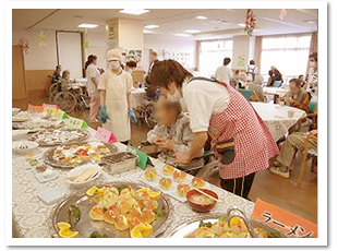 基本コンセプトの「介護付住居」である入所(レジデンス)は、入居者さまが自分の家として利用できるように、パーソンセンタードケアの理念を目指し、下記のサービス内容の図 の内容で、毎日の生活がより安心・安全・楽しいをモットーにクラブ活動、行事、レクレー ション、および自立した生活に欠かすことのできない健康維持・予防のための、食事の栄 養管理やリハビリテーション等を行い、穏かな気持ちで生活できることを目標として、介護しております。